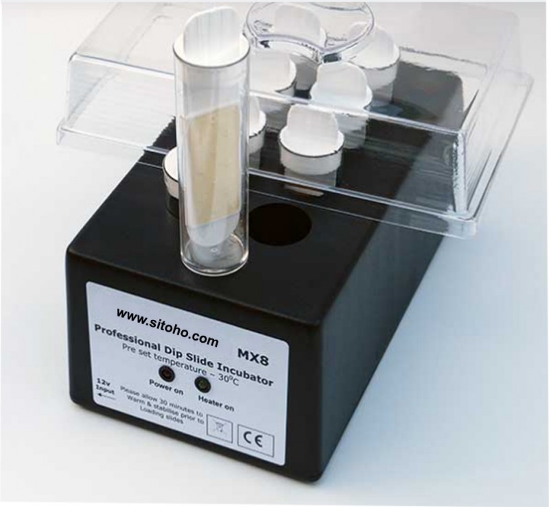 Jual DIPSLIDE INCUBATOR MX-8 DI INDONESIA, Portable Mini Incubator type MX-8 adalah alat inkubasi atau pembiakan bakteri dengan media DIPSLIDE. Dipslide Incubator terdiri dari 8 lobang tempat pembiakan bakteri secara bersamaan.Dipslide Incubator